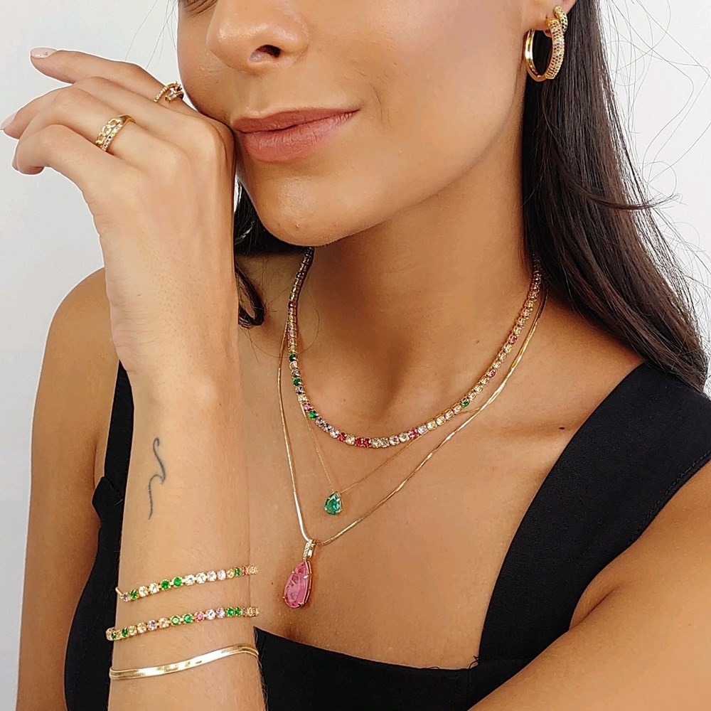 A Riviera Que Não Vira é um sucesso. Ela traz um detalhe inovador garantindo que as zircônias não fiquem viradas, com uma joia carregada de brilho e elegância. Invista em joias lindas, luxuosas e elegantes!
