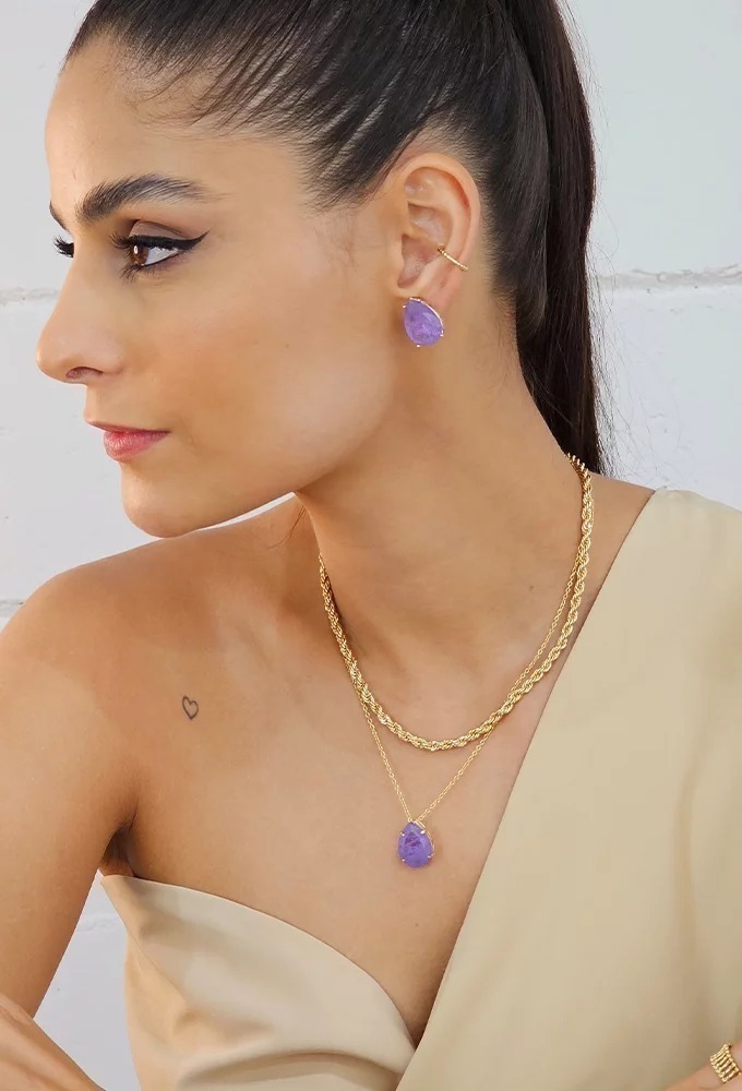 Conjunto de gota com pedra ultra violet fusion